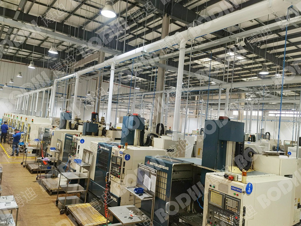 企业问题:甲与壹精密工程有限公司由于搬入新厂房增置了几十台数控车床、铣床等设备,之前买过我司博迪HCE-W1小型静电油雾收集器,过滤效果不错,所以向我公司咨询想要一套高效的油雾净化方案。