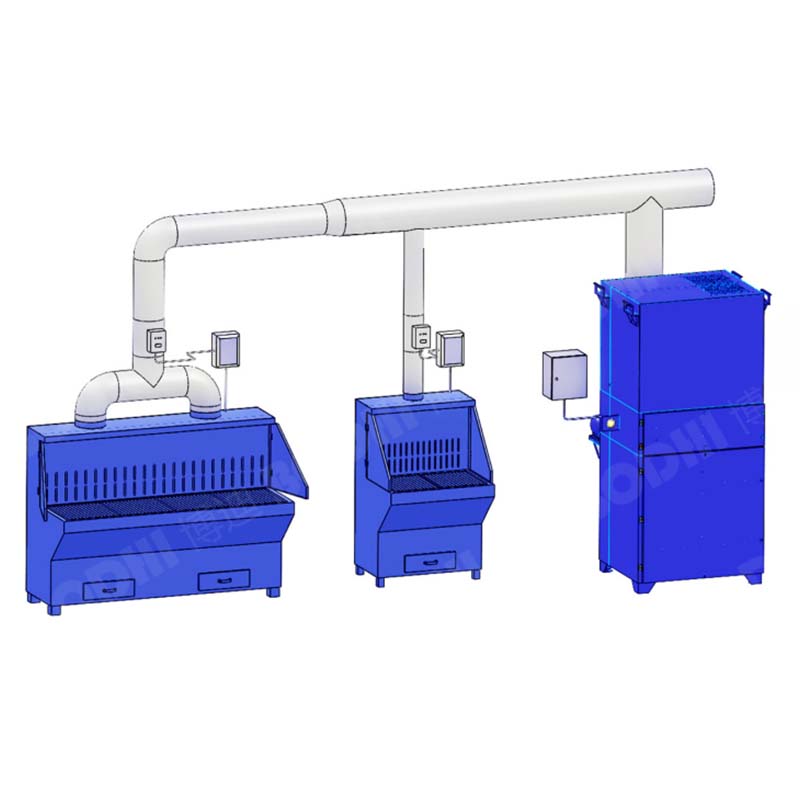 集中式打磨工作台式针对工位较多、打磨量较大的工况而开发出的一款新型工业除尘设备。该款除尘设备采用高效过滤器与集尘主机连接的多效收集方式,净化效率达到99.9%,集尘式工作台设计美观,材料优质,高效净化,为您创造一个满意的工作环境。